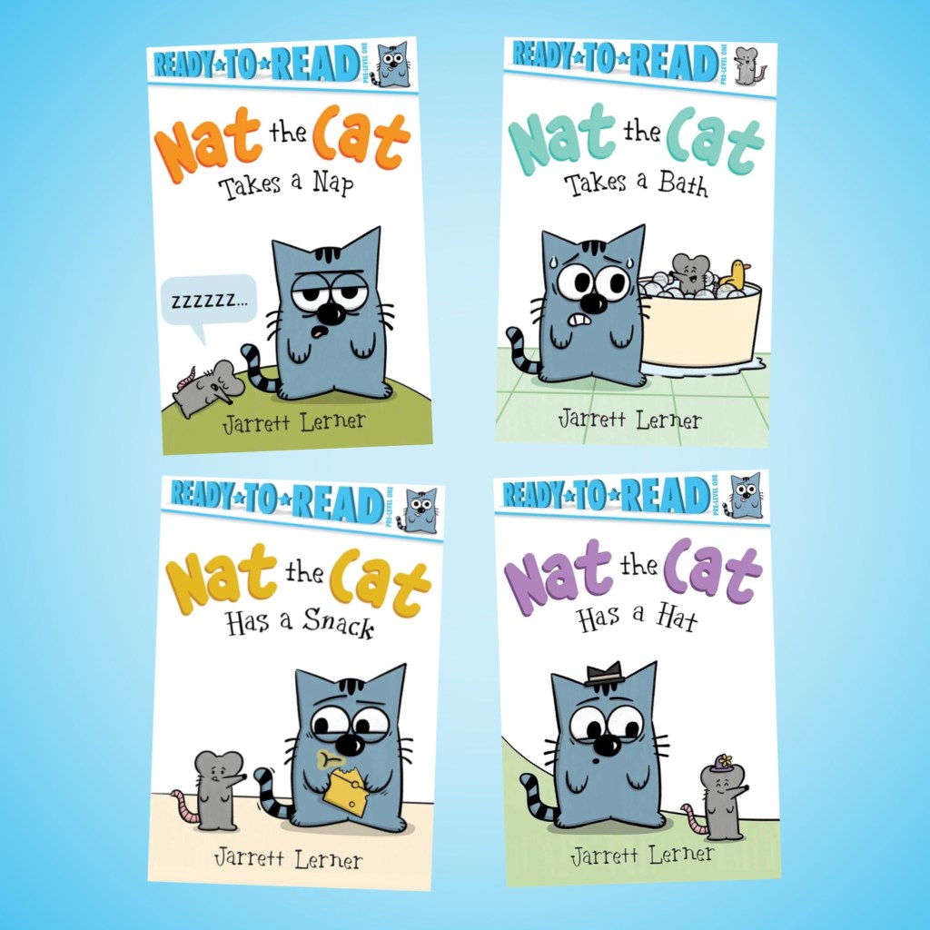 — And finally, in December, it’s not another book, but a box of them — a boxed set, to be specific, of all my Nat the Cat early readers.