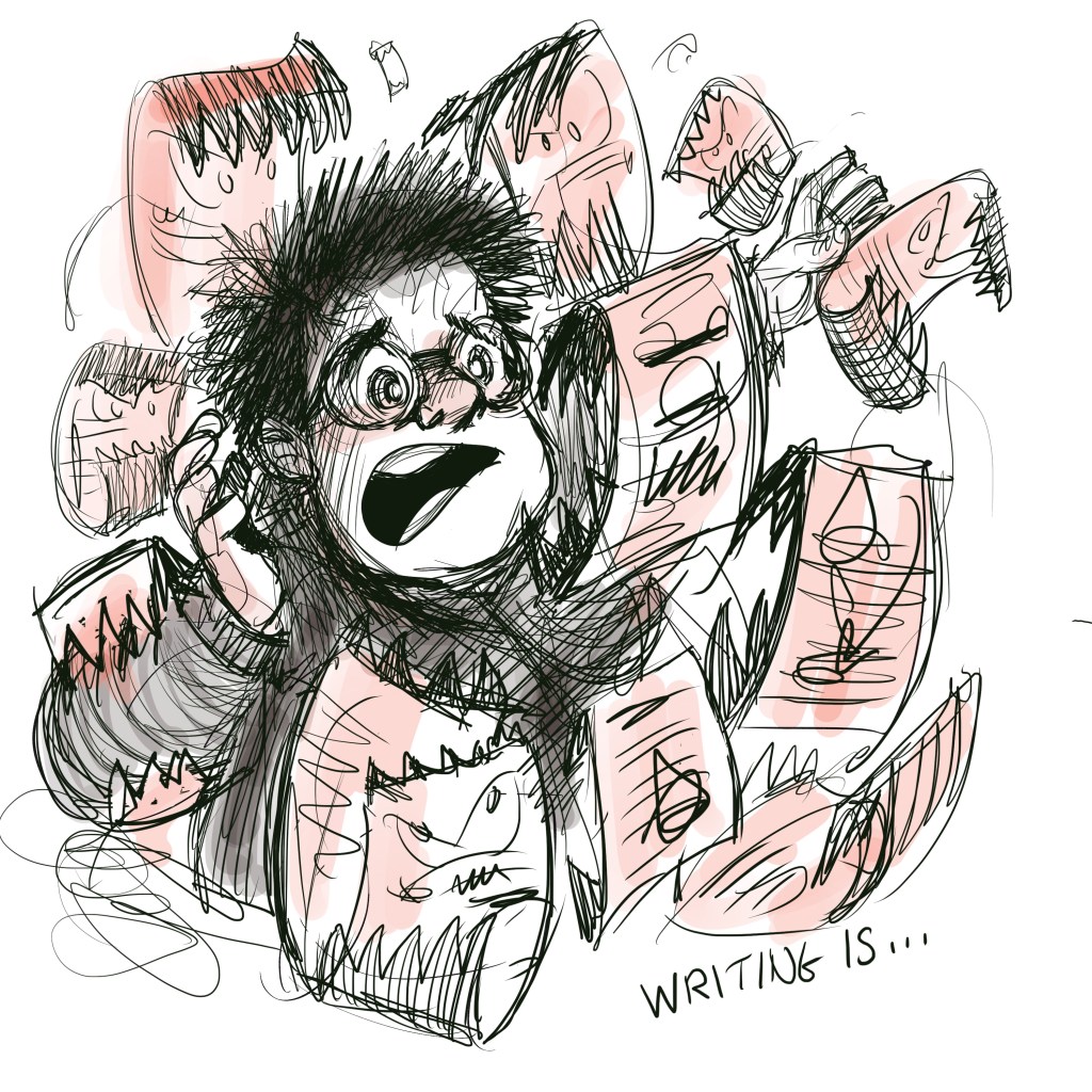 Drawing is… ALSO HARD. I think one of the things I’m proudest of on Zed is that I designed the cover and did the lettering! It took a frankly unbelievable amount of time and I thought, wow, how do artists do this every day? What the heck? Then it turned out I wasn’t using Procreate properly and when they asked me to do the spine lettering as well, I did the first rough sketch in 45 minutes. You live and learn. (Although I am a bit bummed because I like the spine lettering so much better! You can see I kind of know what I’m doing!) Can you tell I’m a bit of a lazy creative? I much prefer editing to writing, actually; my dream is to be a fiction editor because I love helping other people achieve their vision for a project. It’s like a fossil! The shape is there, you’re just helping them reveal the awesome colossus underneath.