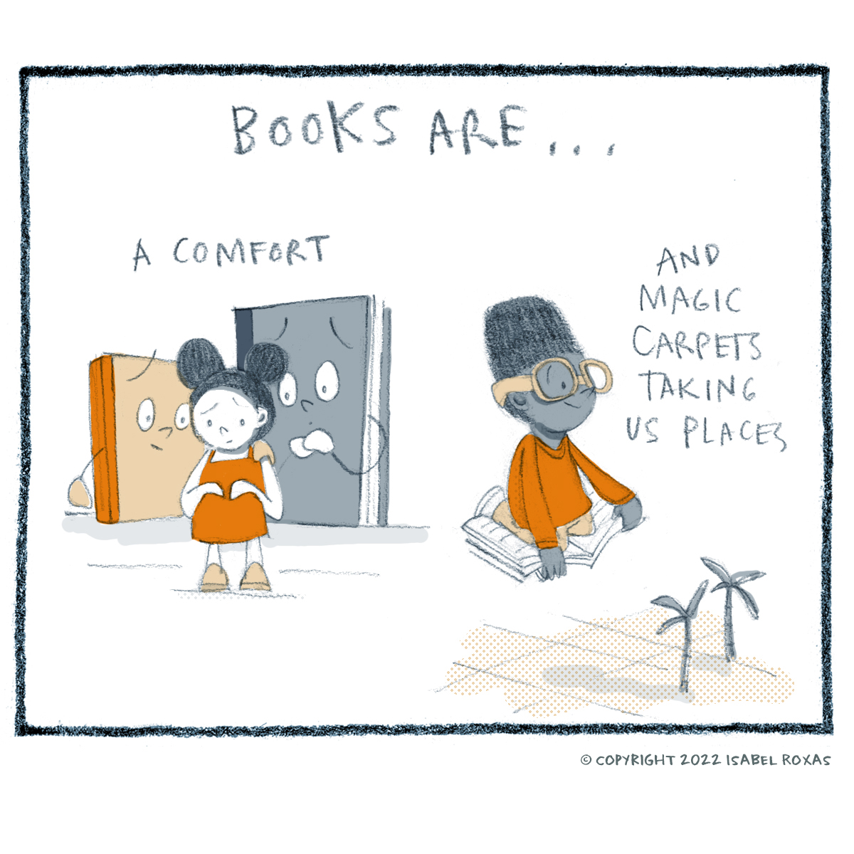 Books are… magic! And that’s not just a beloved indie bookstore in Brooklyn, NY. Books can provide escapism and community, sometimes at the same time! I know it’s a cliché, but it’s true! I was doing an author visit a couple weeks ago and a kid raised his hand and said he had a friend who was nonbinary, like in my book. And I smile every time I think about that–I hope Zed and other books let that kid see his friend living a full life, and that the friend sees that there are so many possibilities out there!