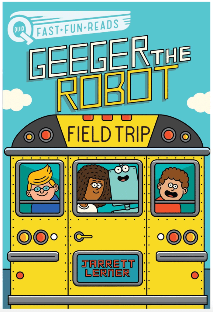 Field Trip marks the first time Geeger ventures outside of the safe, comfortable confines of Amblerville Elementary School — a wonderfully exciting but also somewhat scary prospect for the bot. Below I’ve shared my publisher’s official description of the book, which comes out on September 5th, 2023, but is now available for preorder wherever books are sold. As always, if you want your copies of the book signed (or signed and personalized), you can order from my local independent bookstore, The Silver Unicorn. Click HERE to do that!