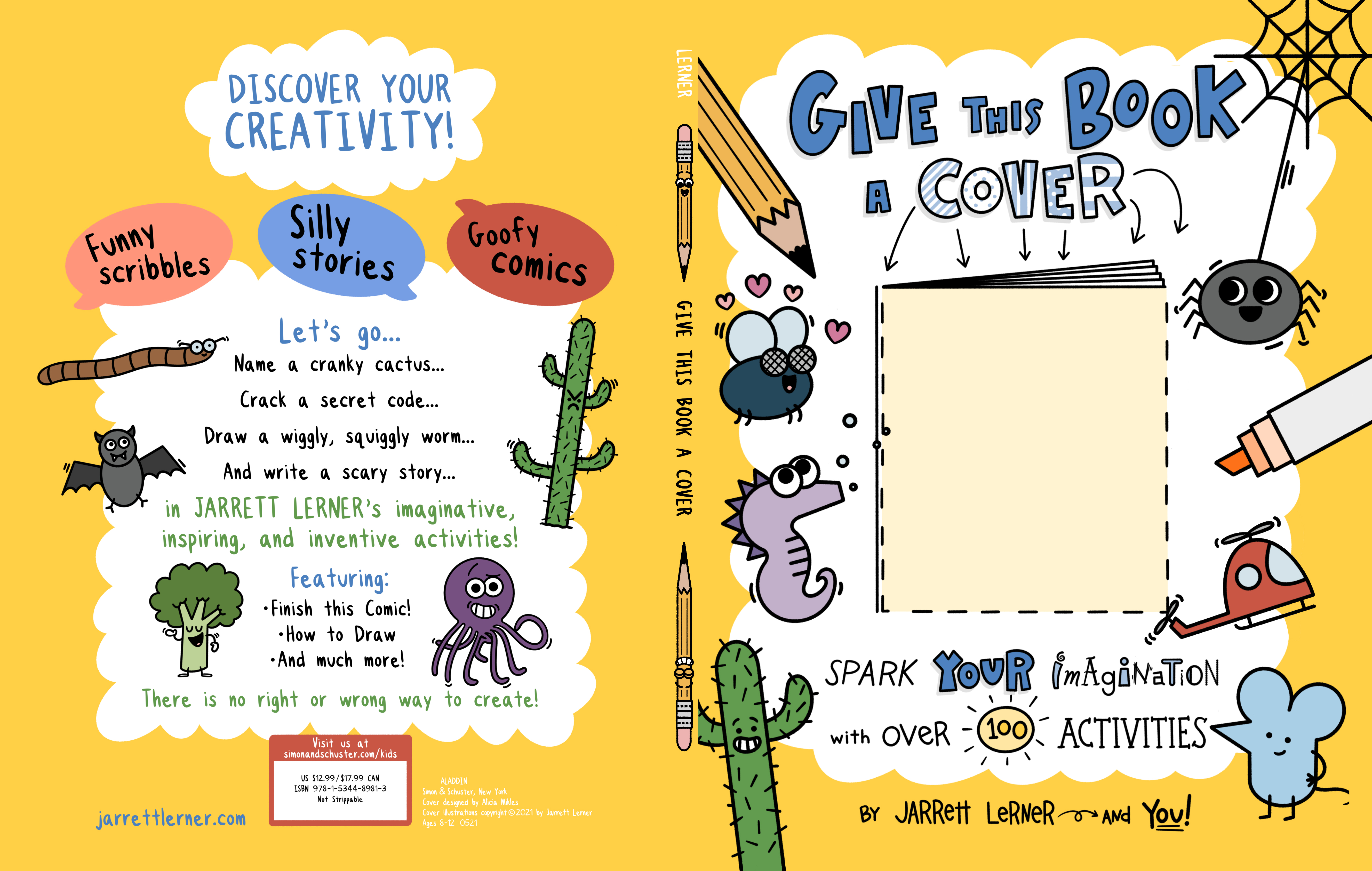 That’s right — this is the cover of my second activity book, Give This Book a Cover, which comes out on May 4th (just about three months away!). This book contains the same sorts of activities as you can find in Give This Book a Title, as well as on the Activities page of this website. However, with this batch of brand-new activities, I tried to give kids who wanted it an opportunity to push themselves a little further. In Give This Book a Cover, young creators will find the same silliness and fun — and, of course, instruction and inspiration! — but many of the activities will prompt them, if they choose, to engage in some deeper self-reflection and -exploration. All of this is intended to help kids learn how to mine their own selves and experiences for the sort of raw material needed to create stories of their own, whether they choose to write them, draw them, or both!